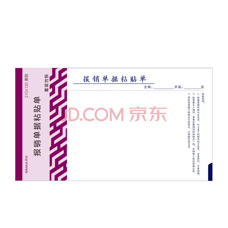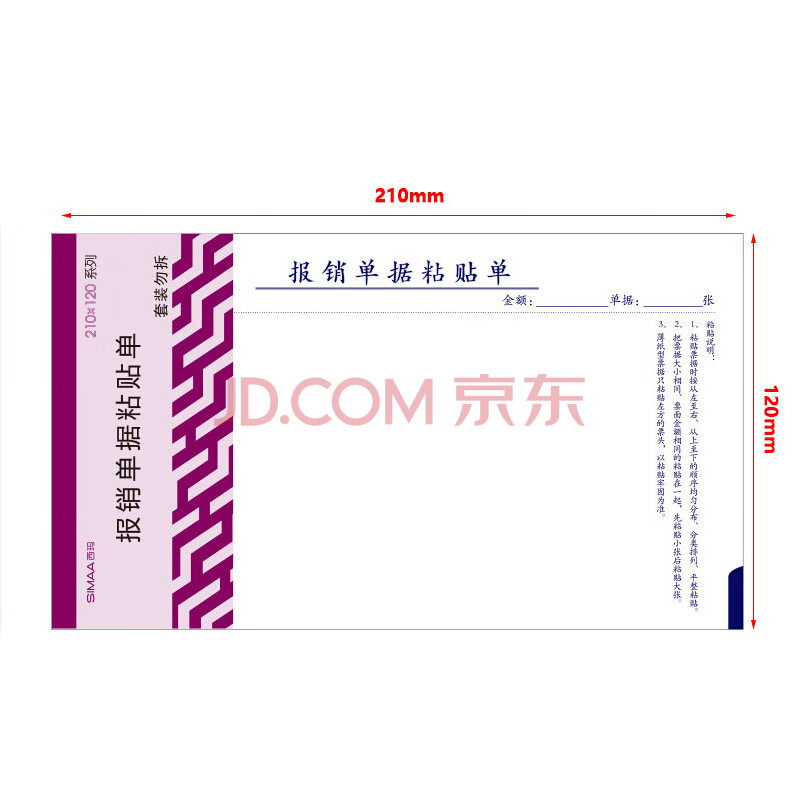 商品相册:西玛(SIMAA)丙式-26报销单据粘贴单 原始凭证粘贴单210*120mm 50页/本 5本/包热门商品办公用品打印纸第