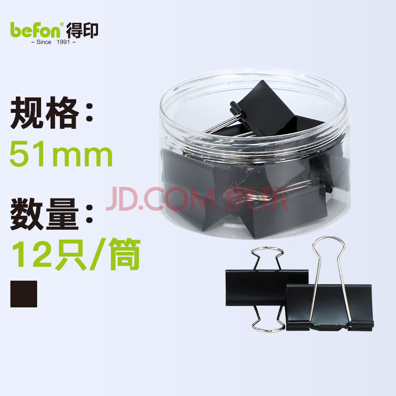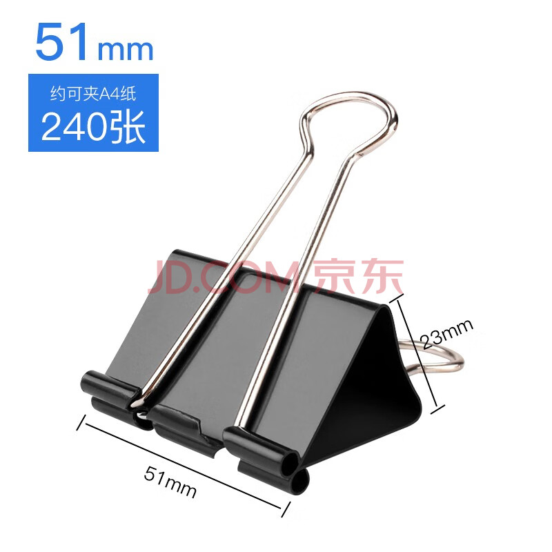商品相册:得印长尾夹12只51mm超大号1#燕尾夹黑色 多规格纸票夹金属铁夹子票据单据小夹子办公用品12只/筒3920第