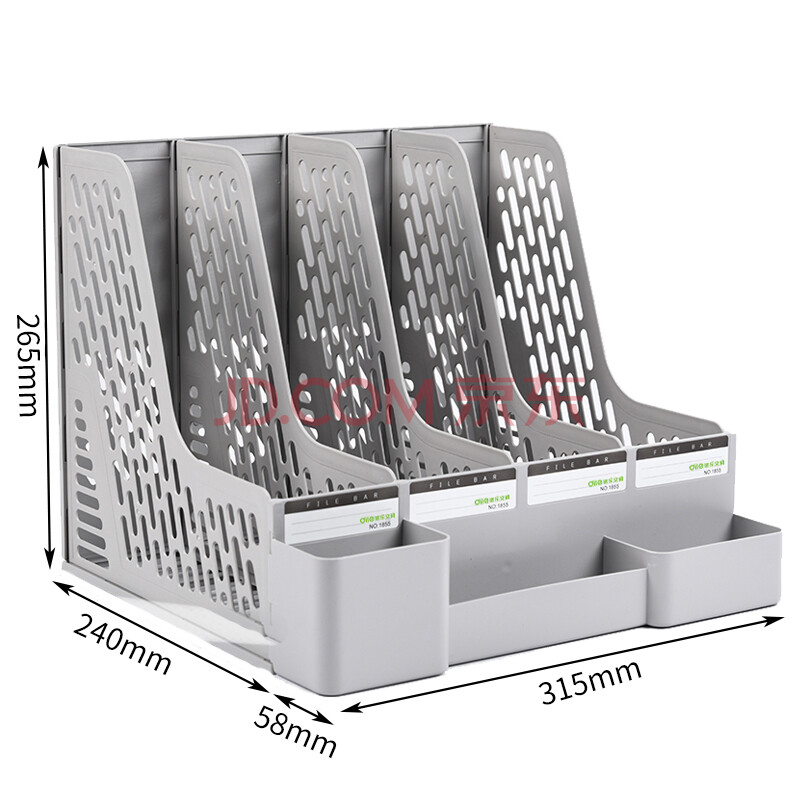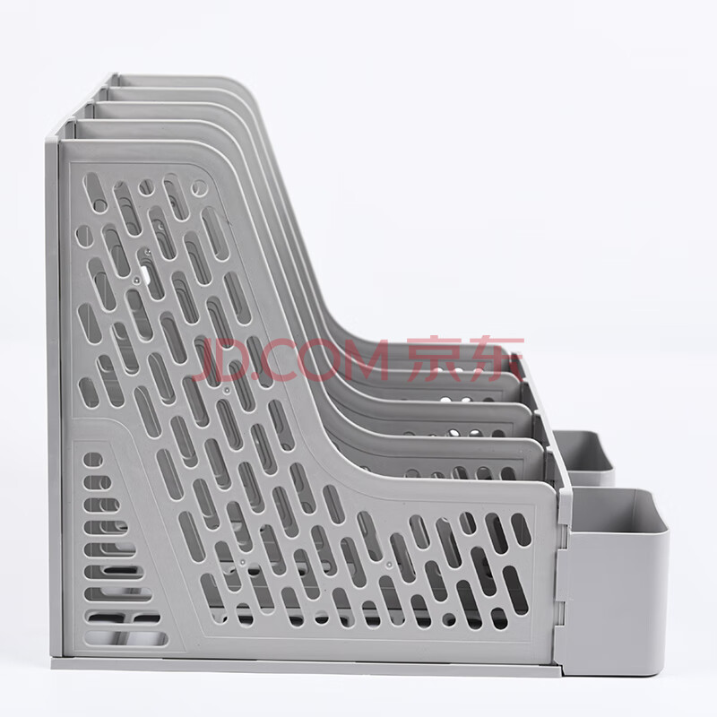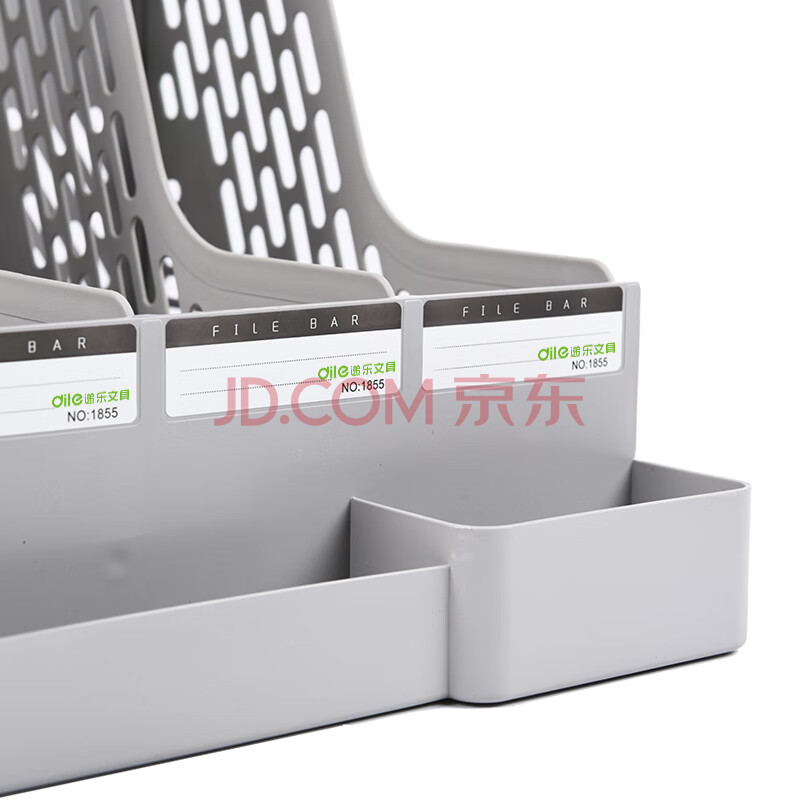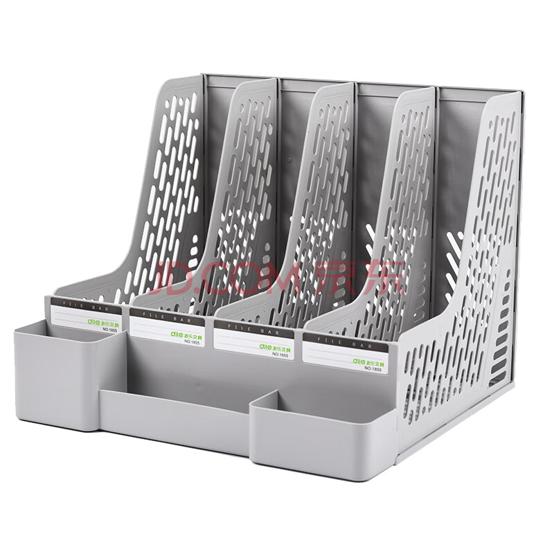 商品相册:递乐 办公助手文件框/文件栏/文件架/资料架/文件夹 四栏文件筐矮款带笔筒 1855灰色第
