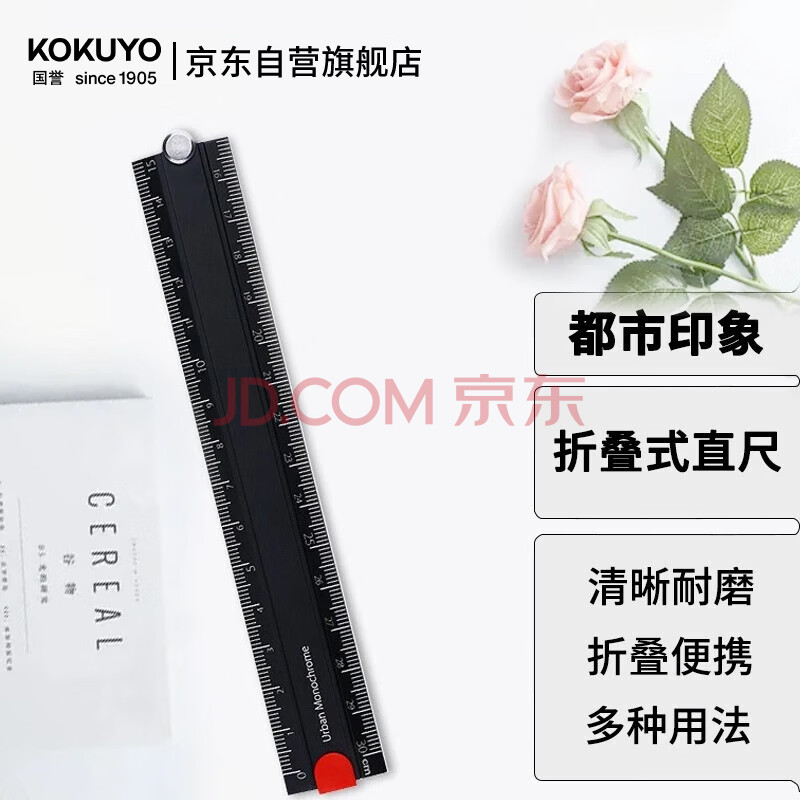 商品相册:国誉(KOKUYO)都市印象学生高考折叠式铝制30cm直尺子 160*24*3mm 黑 WSG-CLUW30D第