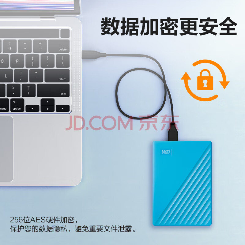 商品相册:西部数据(WD)移动硬盘4TB USB3.0 My Passport随行版2.5英寸 蓝 机械硬盘 笔记本电脑外接 大容量加密 家庭存储第