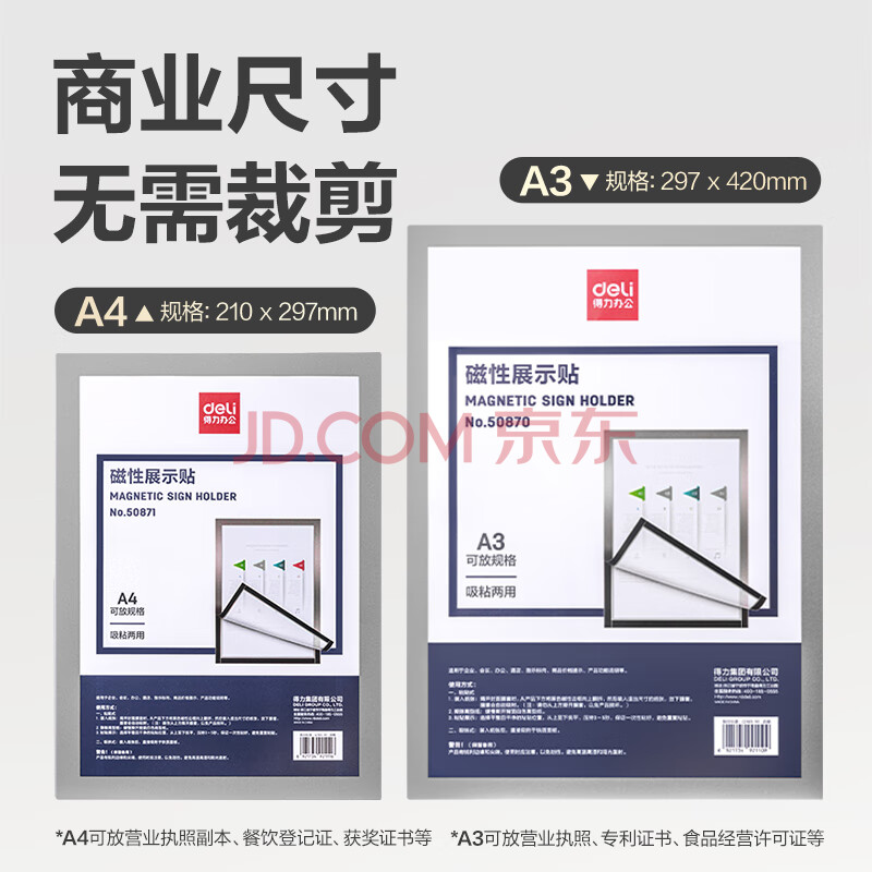 商品相册:得力(deli)【超级爆款】得力(deli)A4磁性展示贴 营业执照框 副本保护套文件框 公告栏通知贴纸 50871第