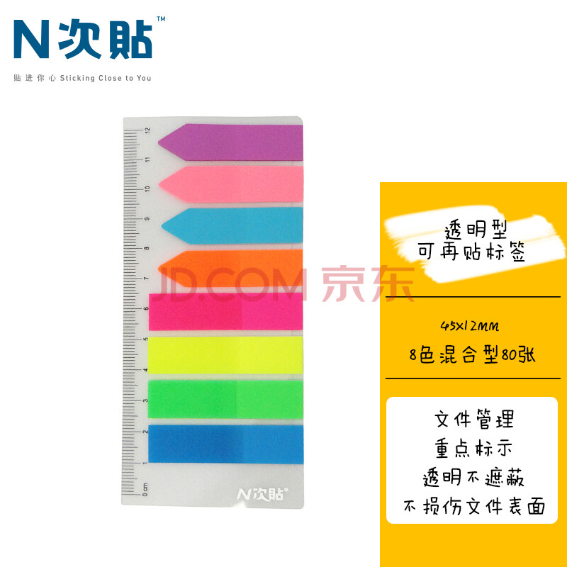 商品相册:N次贴(STICKN) 80张组合8色荧光膜指示标签贴45*12mm分类索引便利贴记事贴34034第