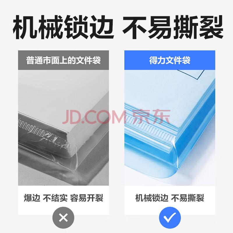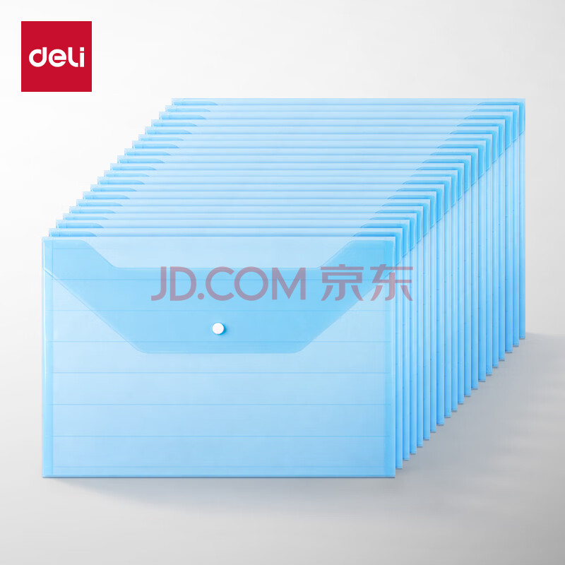 商品相册:得力(deli)20只A4条纹透明文件袋 按扣资料袋 塑料防水档案试卷文件收纳 发票收纳 办公学习用品 27028第
