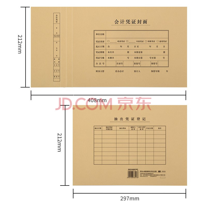 商品相册:西玛(SIMAA)A4裹背凭证封面横版25套 120g牛皮纸(无需包角)212*299mm a4记账凭证纸报销单封面FM158第