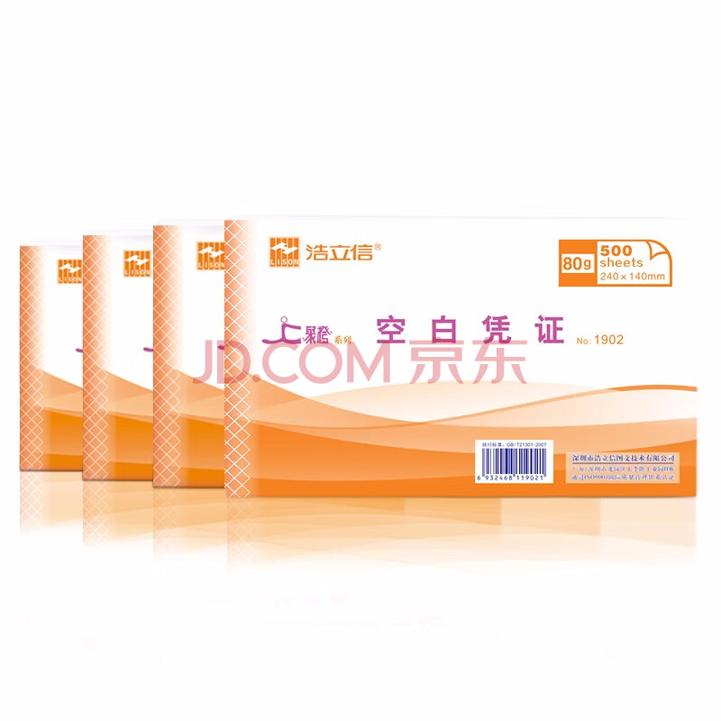 商品相册:浩立信(LISON)【超级爆款】聚橙优选空白凭证纸240*140mm 80G 500张/包发票版通用凭证打印纸财务办公第