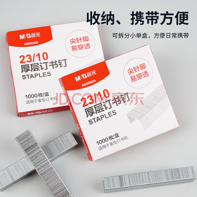 商品相册:晨光(M&G)23/10号厚层订书钉 易穿透订书针 重型订书钉 办公用品 1000枚/盒 5盒装ABS92625开学必备第