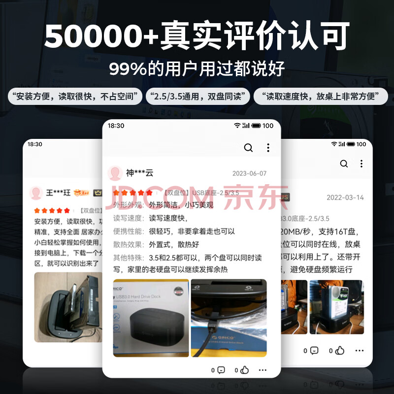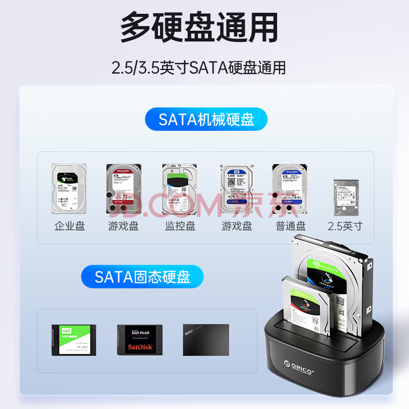 商品相册:奥睿科(ORICO)硬盘盒底座2.5/3.5英寸SATA串口机械固态外置外接移动笔记本台式读取硬盘笼 双盘位6228US3第