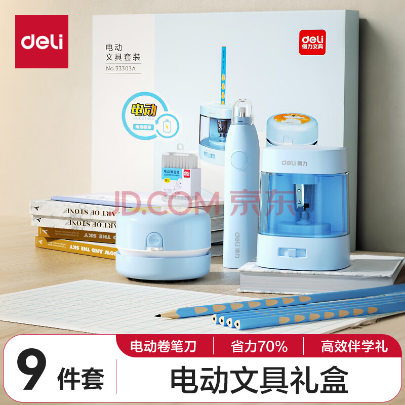 商品相册:得力(deli)学生电动文具套装礼盒生日礼物男女孩电动卷笔刀洞洞铅笔桌面吸尘器橡皮擦考试开学文具生日礼物第