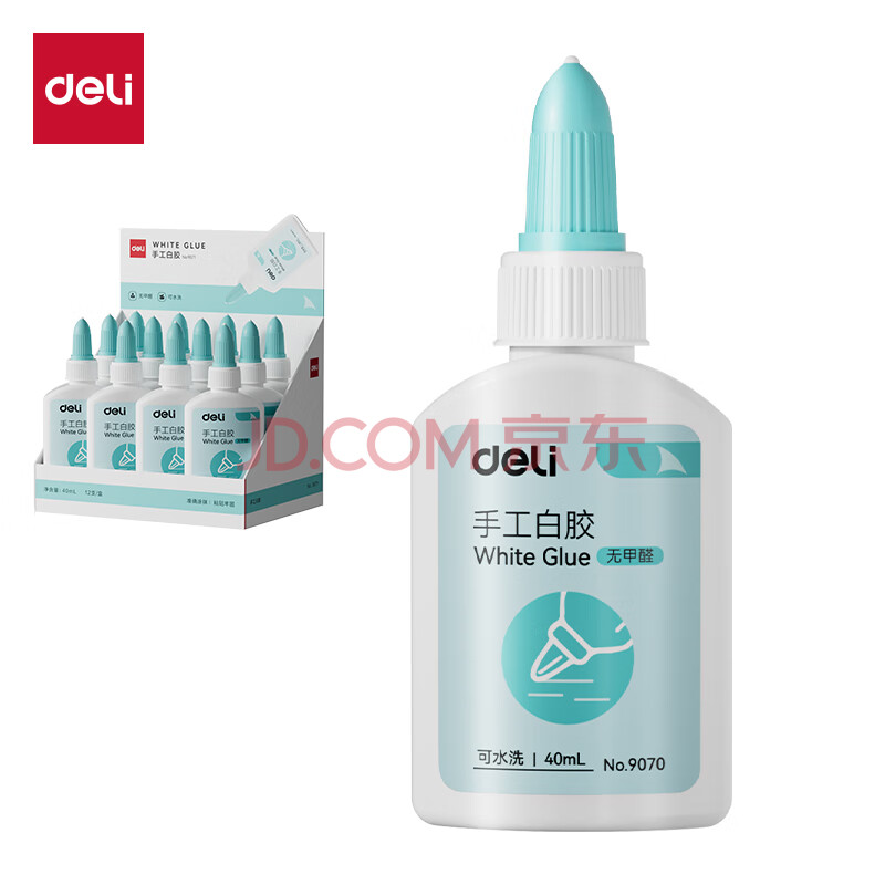 商品相册:得力(deli)(deli)40ml手工白胶 学生开学文具DIY白乳胶 环保无甲醛可水洗胶水 学习用品 12支装 9070第
