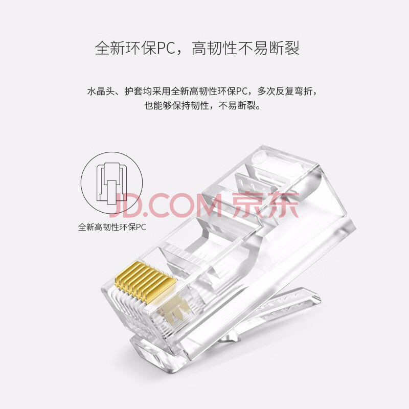 商品相册:TP-LINK 超五类非屏蔽网络水晶头 CAT5e RJ45 电脑网线连接头 工程级网络线缆连接器 100个/包 EH5e-100第
