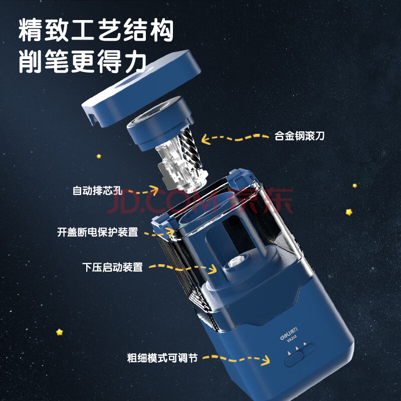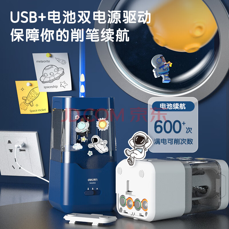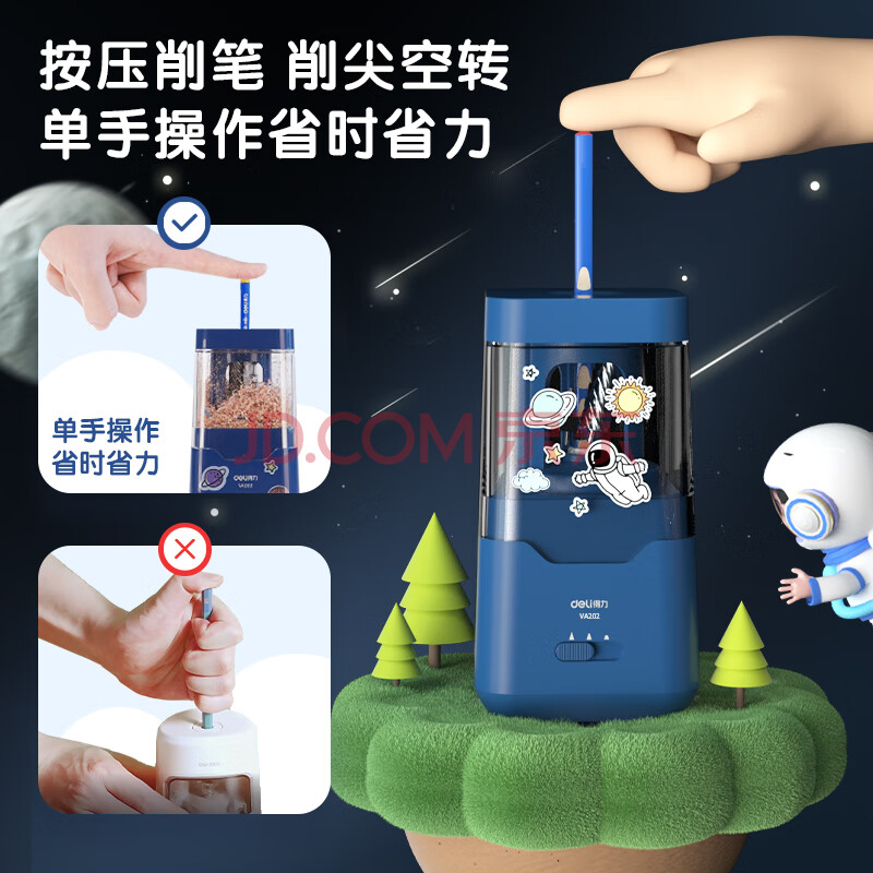 商品相册:得力(deli)学生电动卷笔刀双电源(电池/插电)按压半自动削笔器转笔刀削笔刀 儿童学生文具考试生日开学礼物蓝第