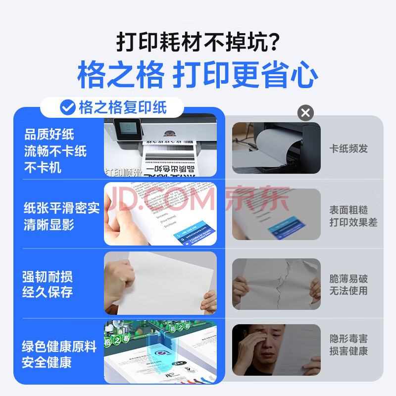 商品相册:格之格 A4打印纸 70g复印纸 A4纸双面打印纸 光滑不易卡纸 500张/包 5包1箱【考试考研考公复习】第