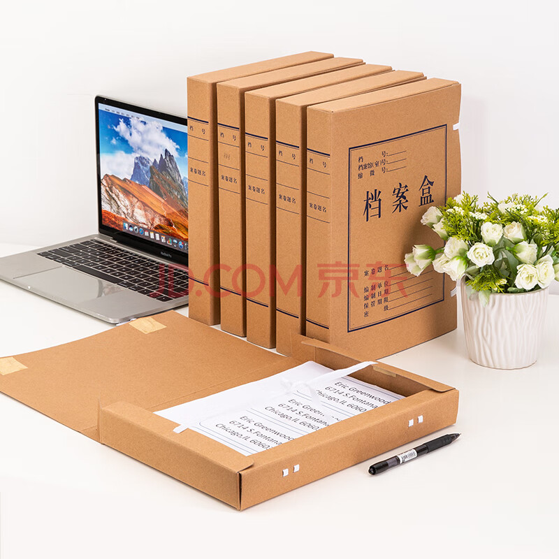 商品相册:得力(deli)10只40mm混浆300g牛皮纸文件盒 档案盒 加厚桌面财务收纳票据收纳 63206第