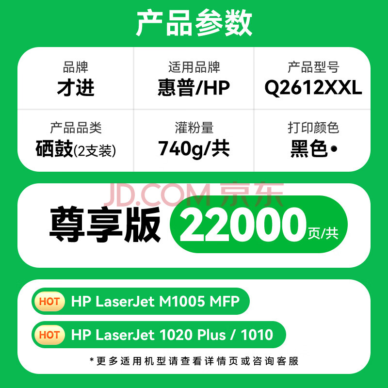 商品相册:才进适用惠普m1005硒鼓hp1020晒鼓12a易加粉1020plus碳粉1010墨粉m1005mfp打印机1018墨盒q2612a粉盒laserjet第1张/共7
