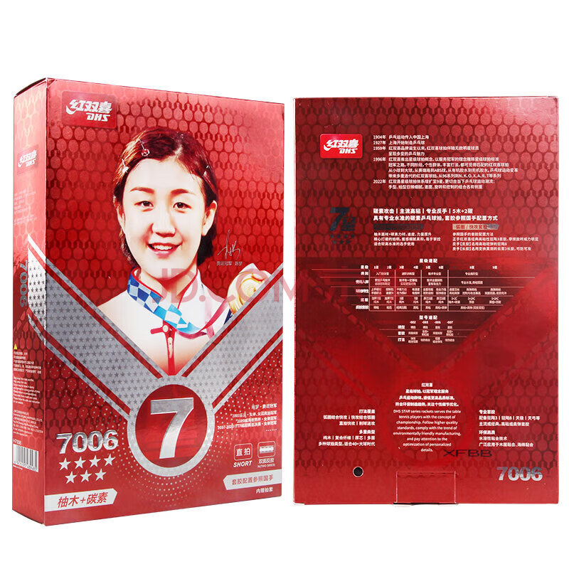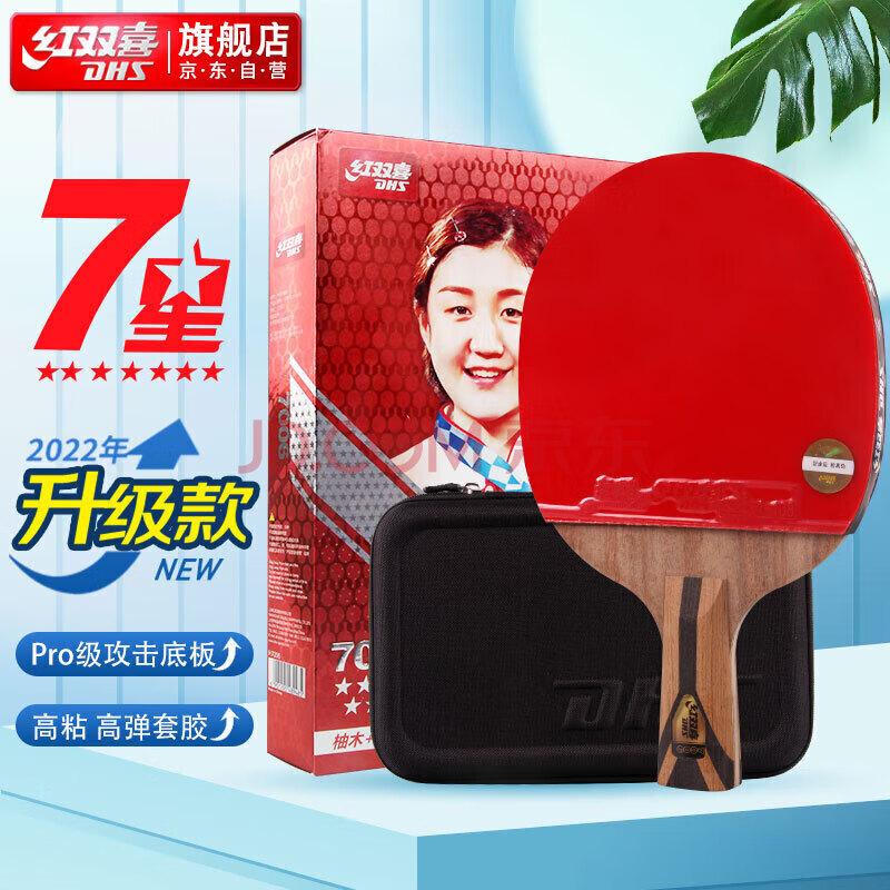 商品相册:红双喜狂飙七星乒乓球拍直比赛成品单拍柚木面材+碳素7层攻防H7006含球第