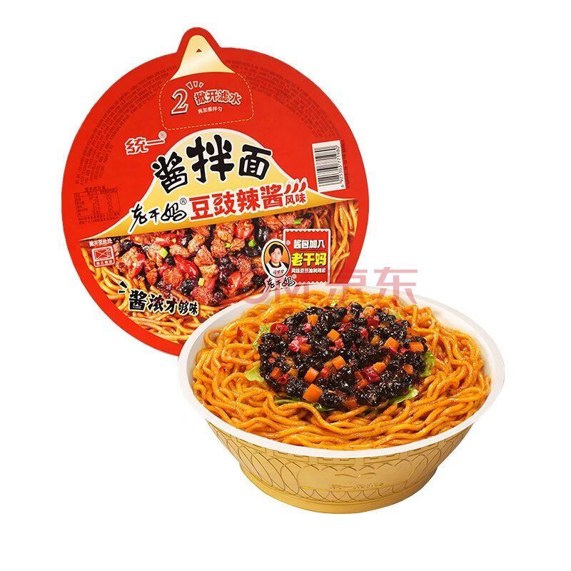 商品相册:统一酱拌面 老干妈豆豉辣酱风味碗面 115g*12碗 整箱干拌面方便面速食第