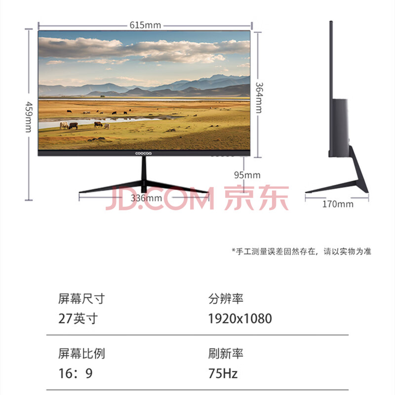 商品相册:酷开 创维酷开27英寸75Hz高清办公显示器低蓝光窄边框可壁挂广视角家用游戏办公电脑液晶显示屏C27J01P第