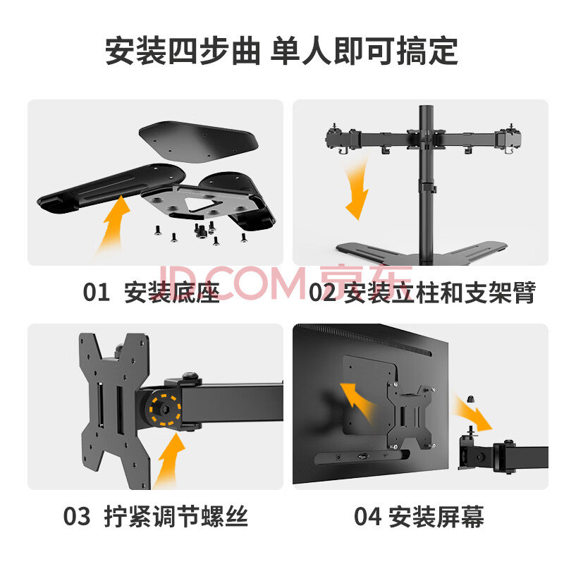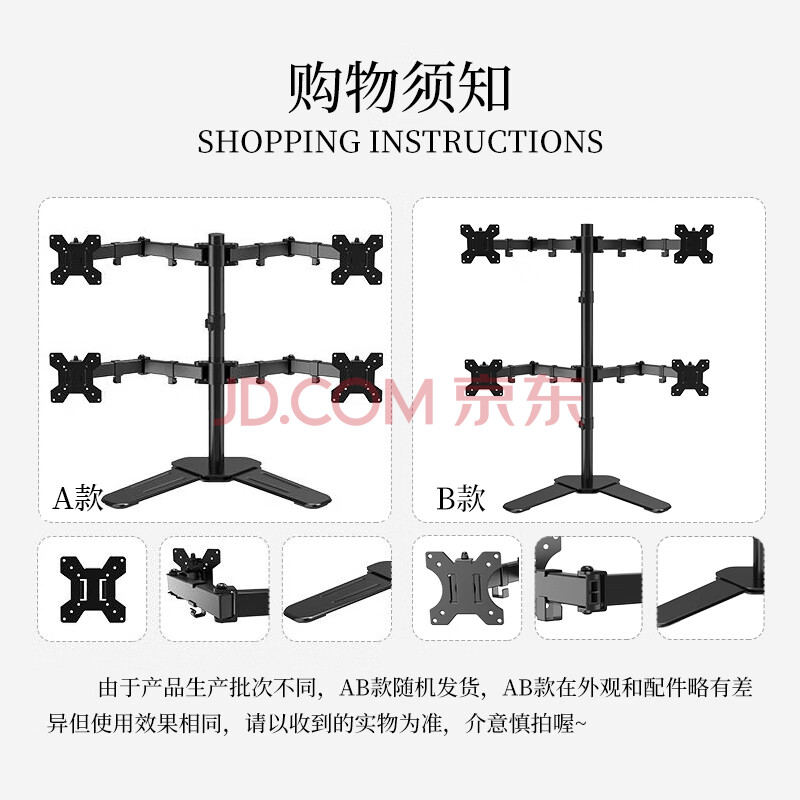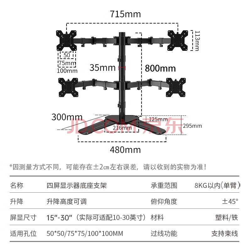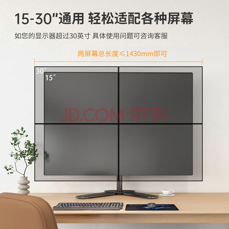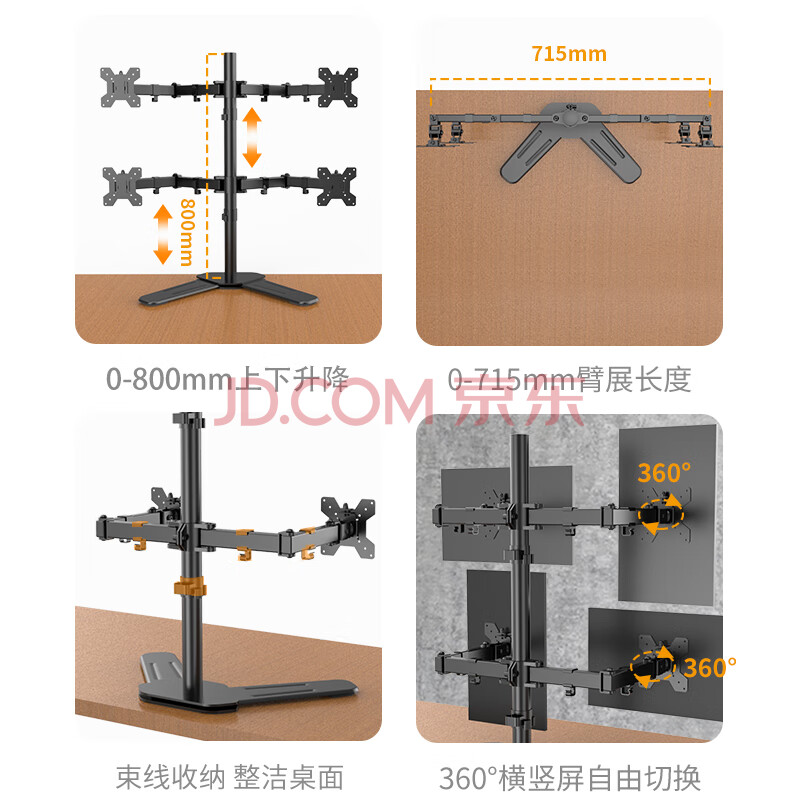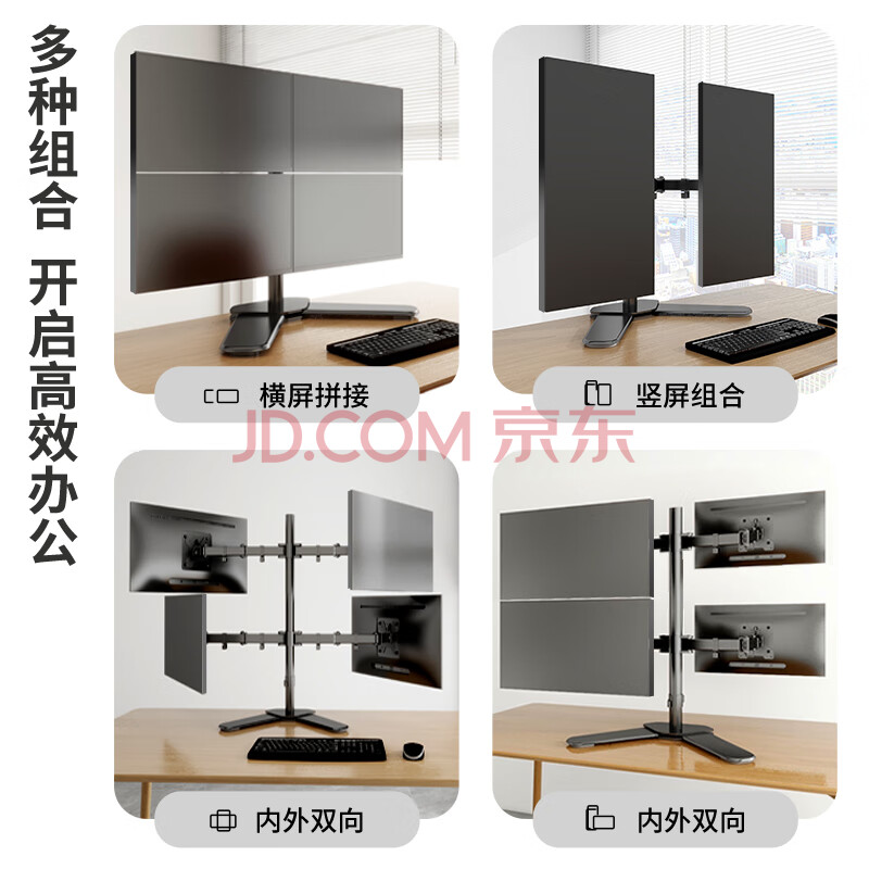 商品相册:LUCKPRO 四屏显示器支架 电脑屏幕支架 金融炒股4连屏拼接显示器增高架 底座式桌面支架15-30英寸第