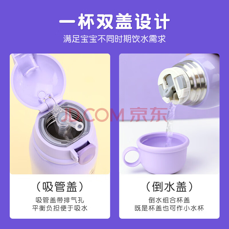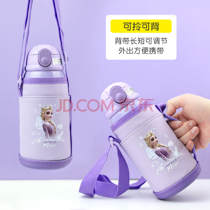 商品相册:迪士尼儿童保温杯双盖不锈钢水杯中小学生户外喝水杯带杯套600ML公主第