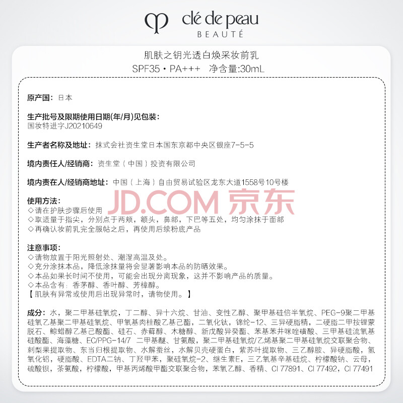 商品相册:肌肤之钥(CPB)【达人专享】白隔离30mL防晒匀皙焕白妆前乳生日礼物送女友第