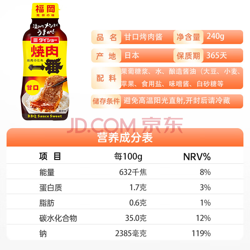 商品相册:大逸昌日本进口 一番甘口烤肉酱蘸料240g 甜口烤肉汁 烧烤腌制调味酱料 第