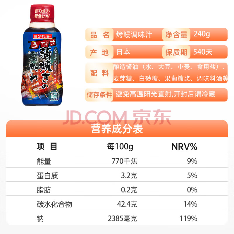商品相册:大逸昌日本进口 烤鳗汁调味汁 日式鳗鱼饭蒲烧烤鳗专用烤鳗鱼酱汁 240g第