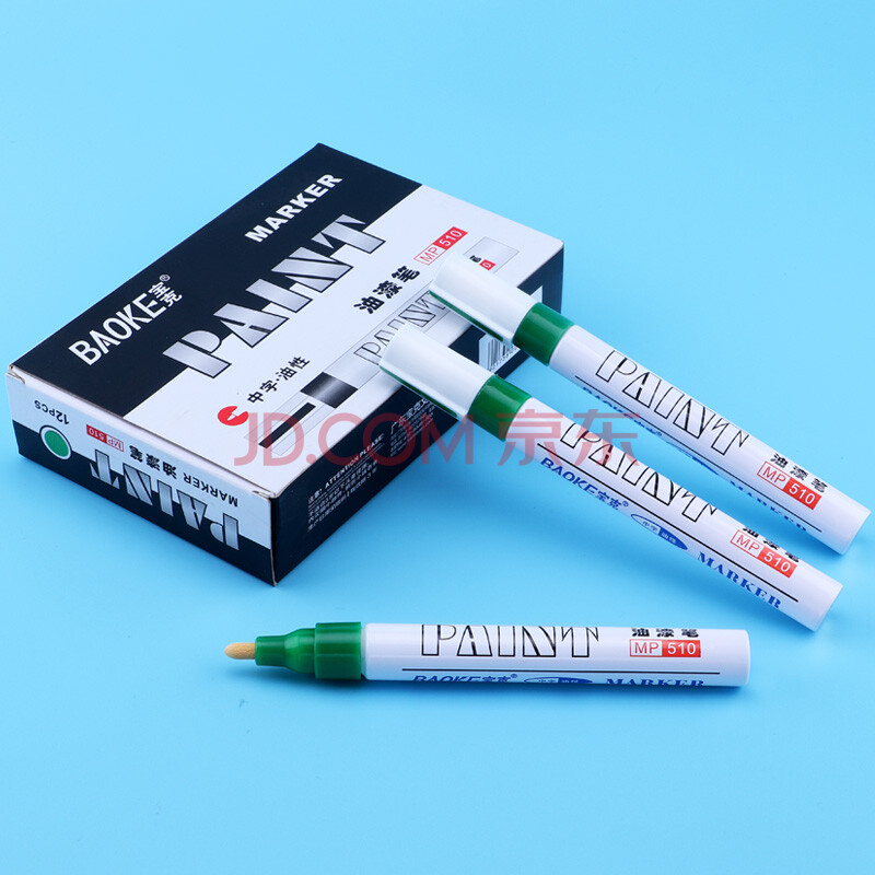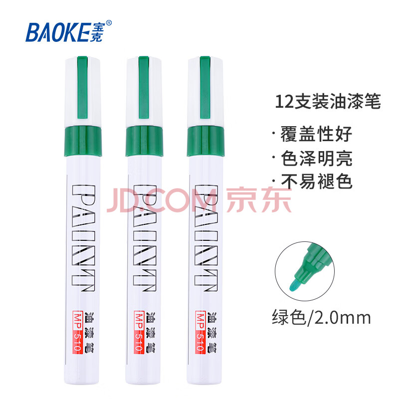 商品相册:宝克(BAOKE)MP510 绿色油性油漆笔 签名笔签到笔记号笔涂鸦笔 12支/盒第