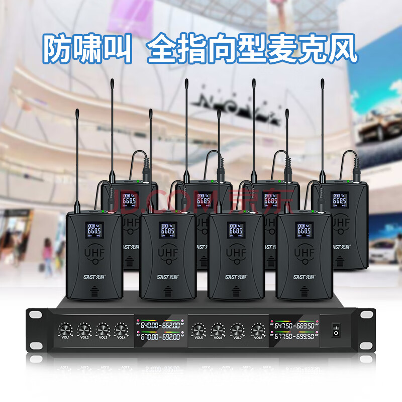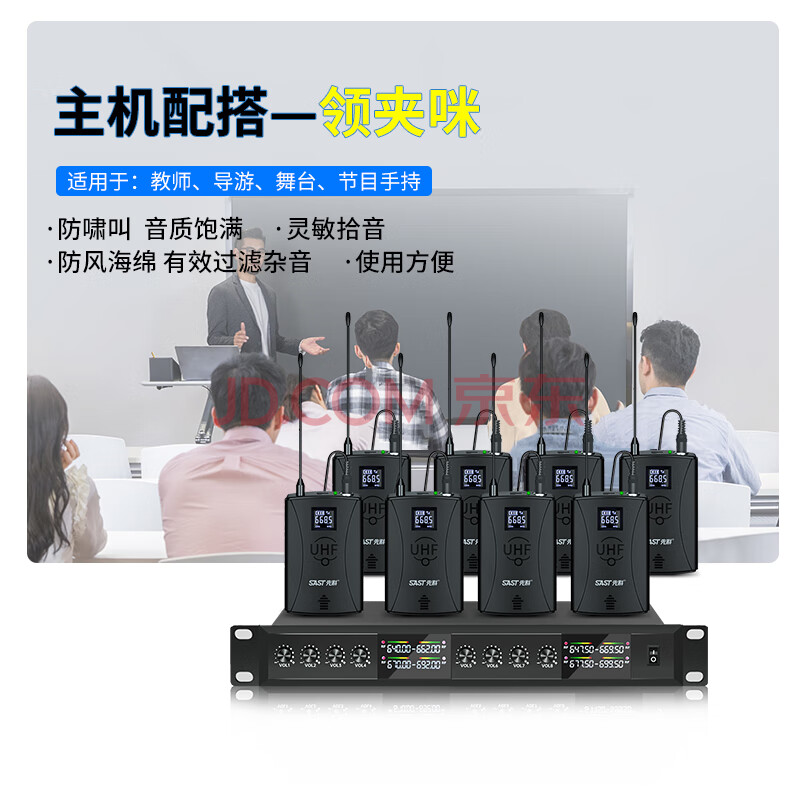 商品相册:先科(SAST)OK-121 会议话筒无线麦克风一拖八无线话筒U段KTV舞台演出演讲主持鹅颈视频会议 领夹版第