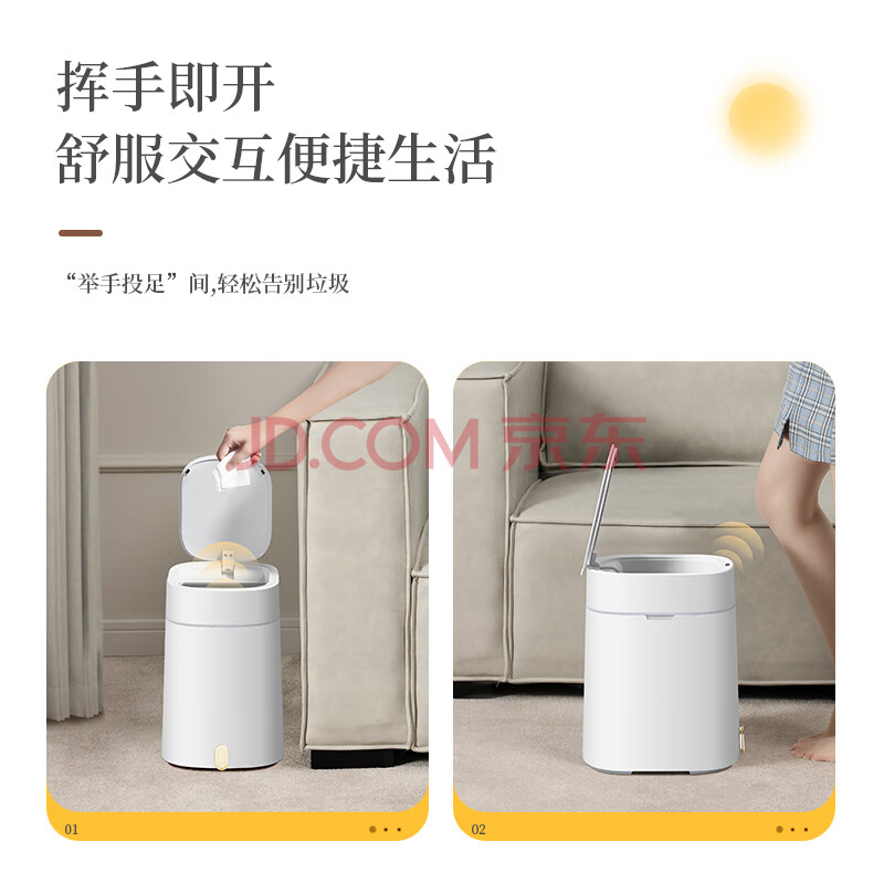 商品相册:洁安惠(JAH)智能感应桶15L垃圾桶智能家用厨房卫生间卧室客厅厕所带1卷垃圾袋第