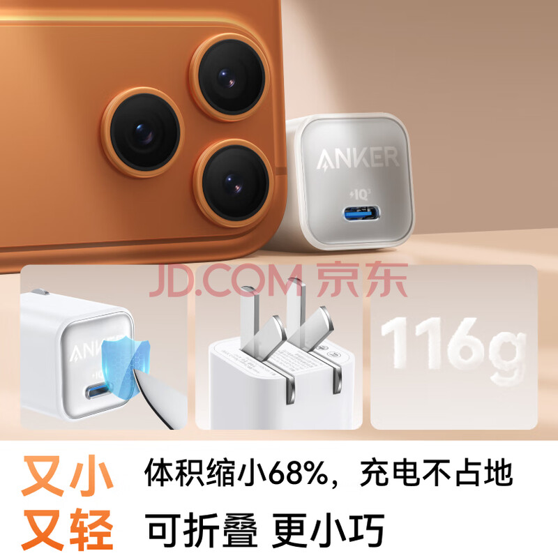 商品相册:ANKER安克30W安心充氮化镓充电器type-c快充pd20W适用苹果17iPhone16Promax15/14/13手机插头 紫第