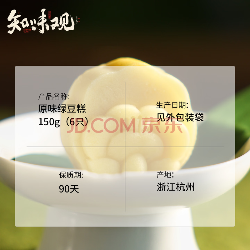商品相册:知味观绿豆糕原味 杭州特产老式糕点心中华老字号订婚喜饼茶点零食150g第