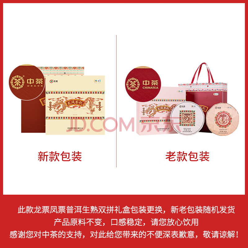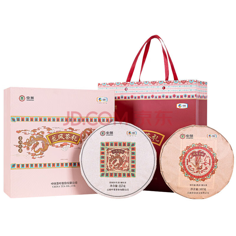 商品相册:中茶普洱茶叶礼盒生茶熟茶组合茶叶龙票+凤票普洱礼盒714g送礼礼物第
