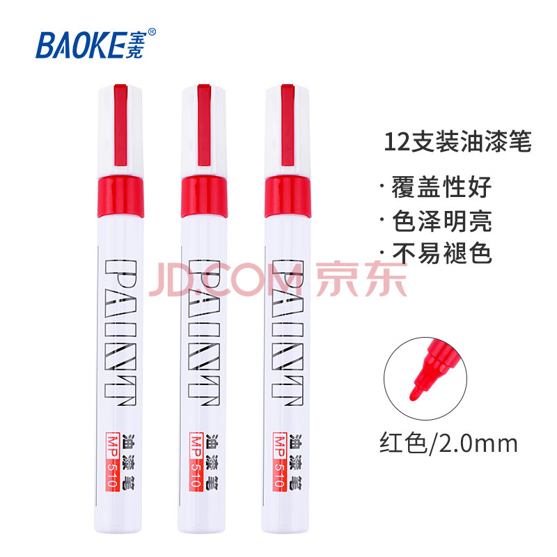 商品相册:宝克(BAOKE)MP510 红色油性油漆笔 签名笔签到笔记号笔涂鸦笔 12支/盒第