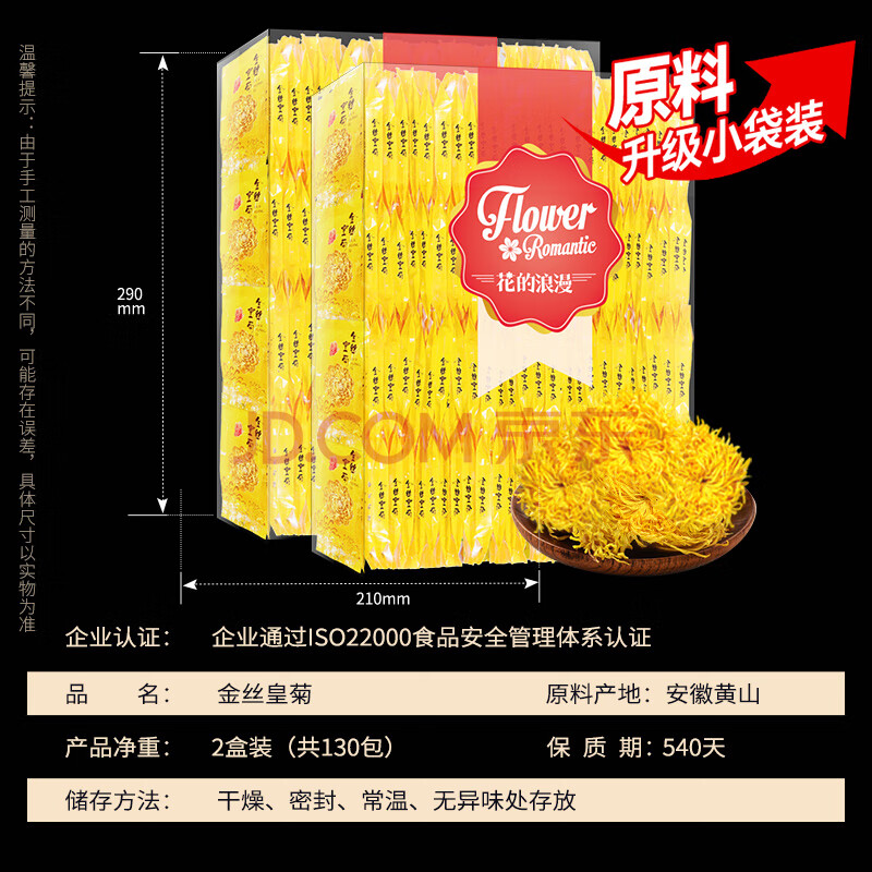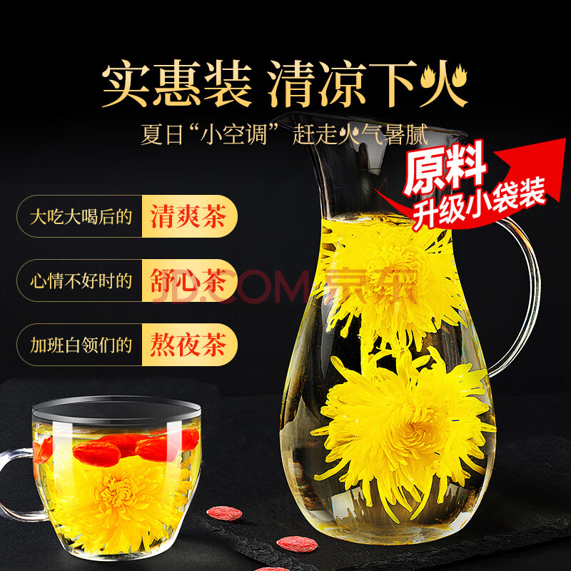 商品相册:贡苑菊花茶130大朵 金丝皇菊胎贡菊花特茶级 独立小包装实惠装70g第