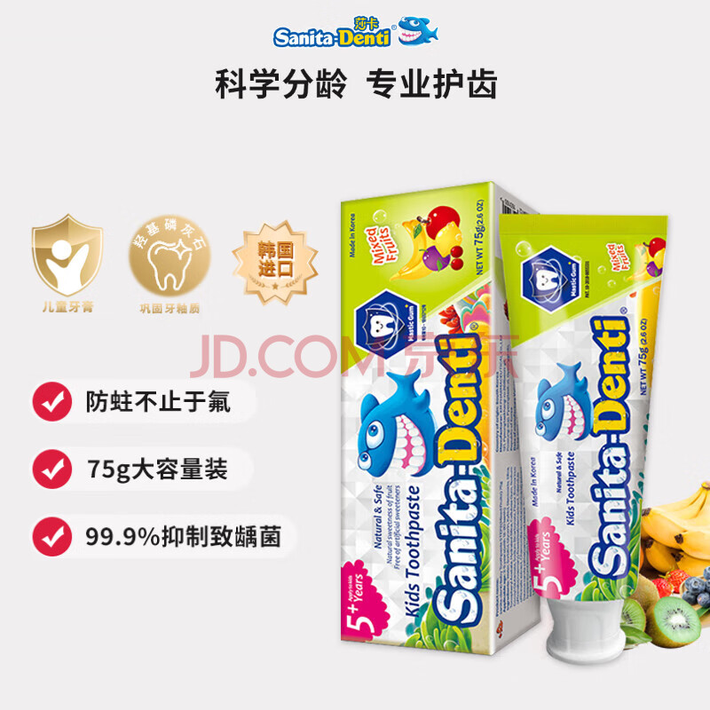 商品相册:sanita-denti韩国进口莎卡儿童牙膏 小学生换牙青少年含氟防蛀清洁6-12木糖醇第