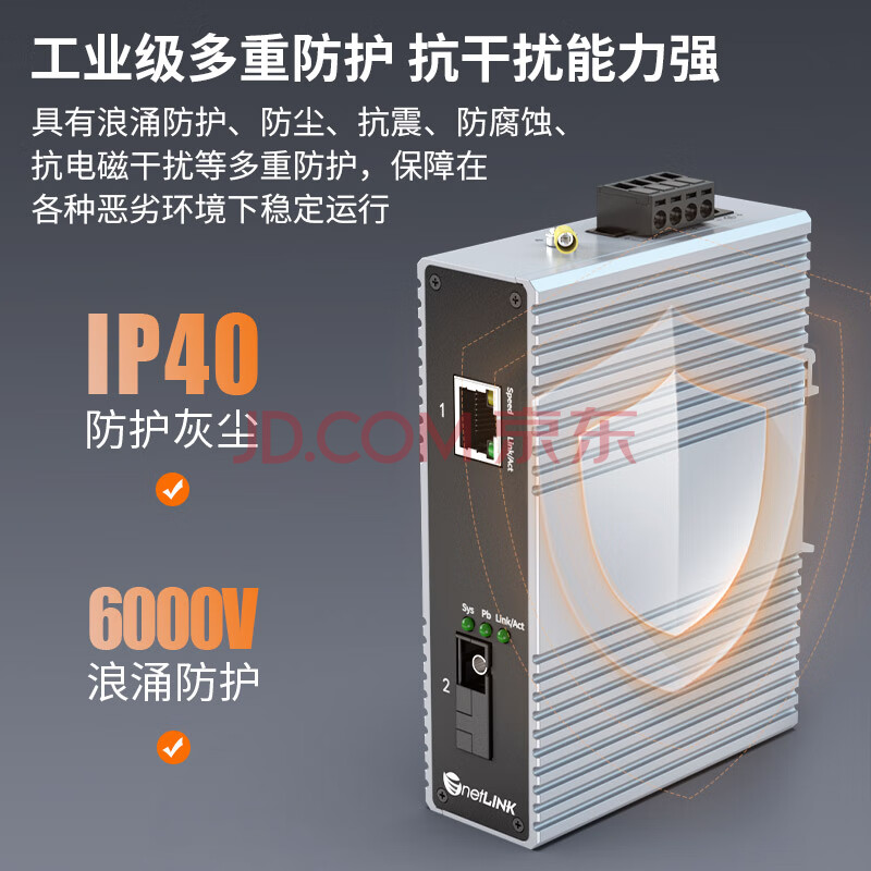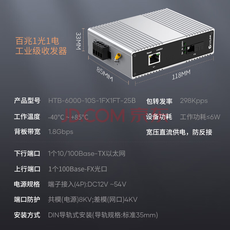 商品相册:netLINK工业级光纤收发器 百兆1光1电单模单纤B端导轨式光电转换器一台 HTB-6000-10S-1FX1FT-25B第