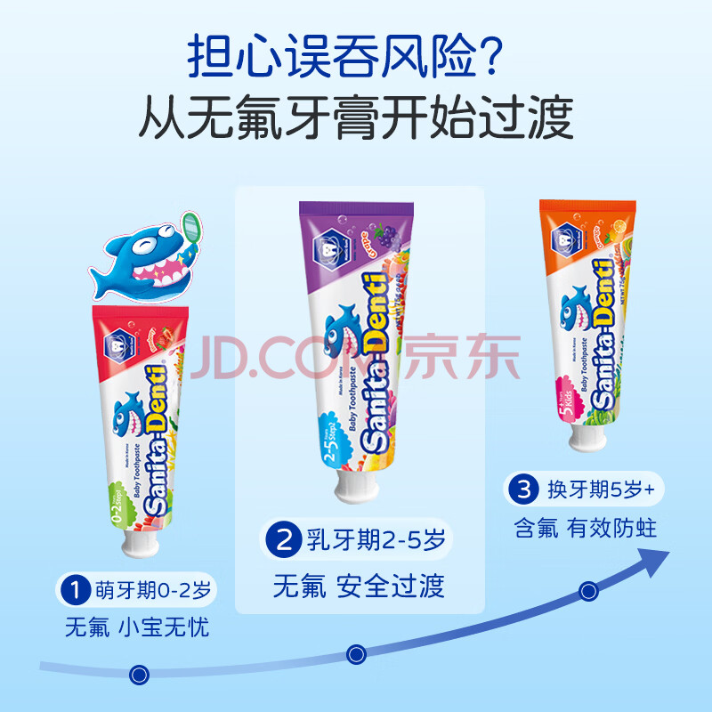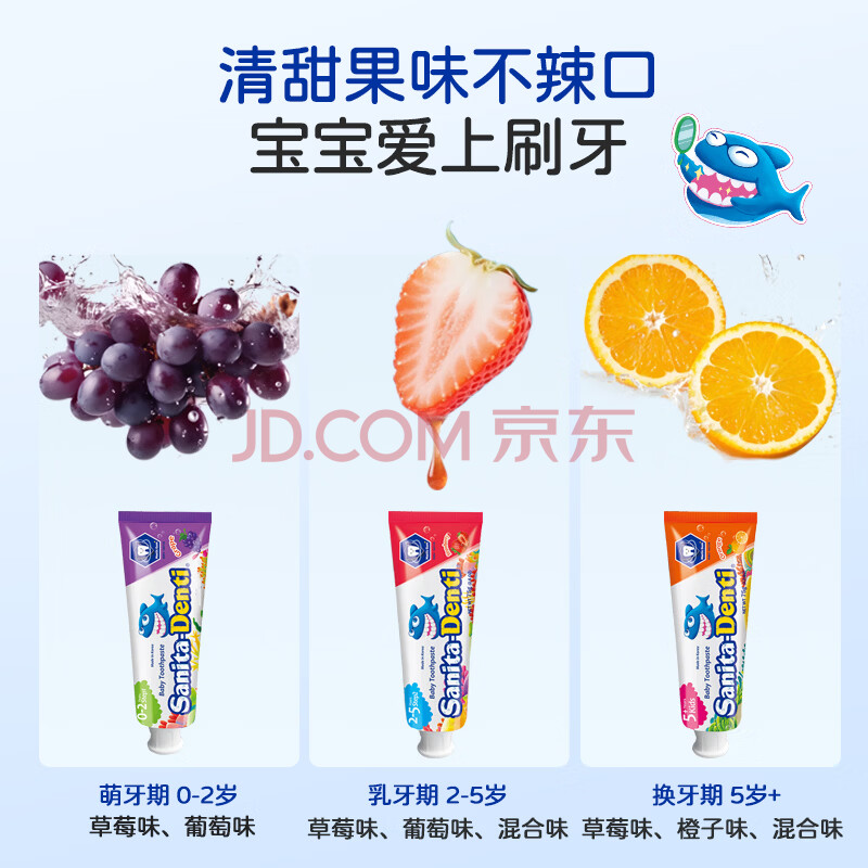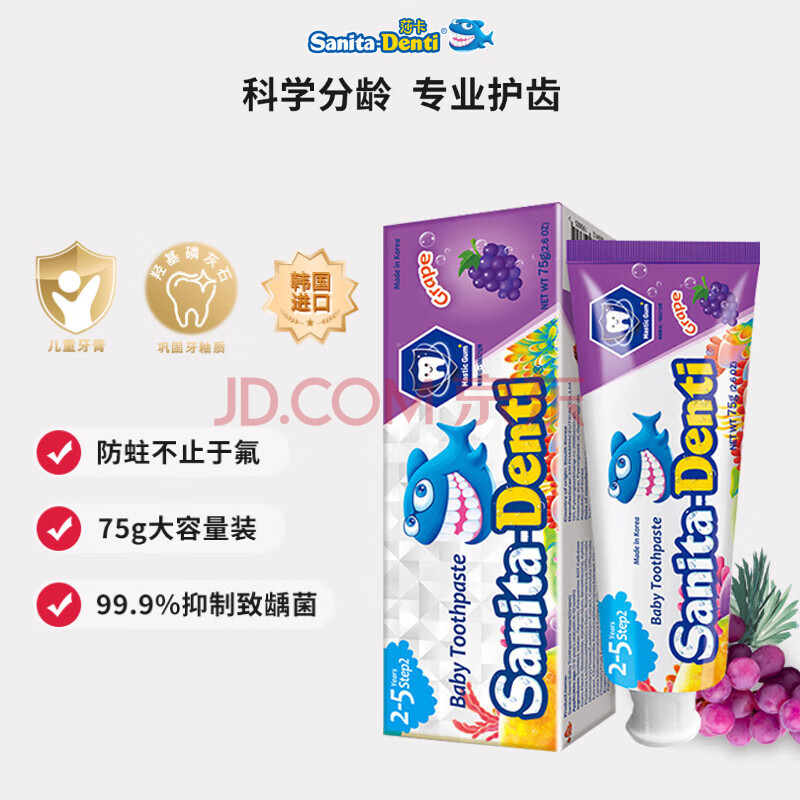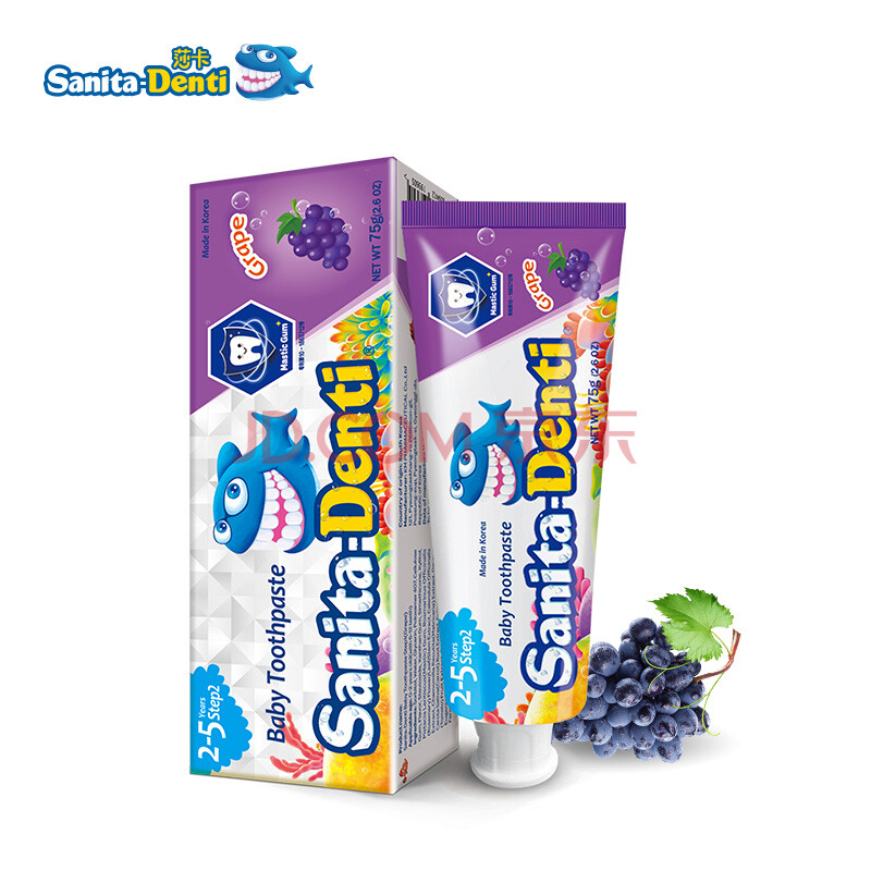 商品相册:sanita-denti韩国进口莎卡儿童牙膏75g 婴幼儿宝宝不含氟3-6岁吞咽木糖醇第1张/共5