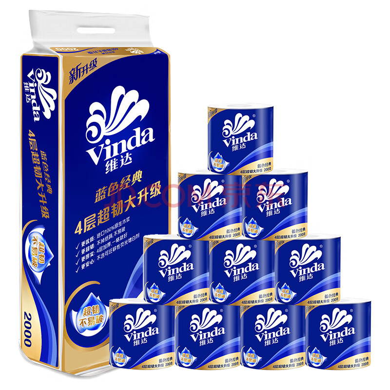 商品相册:维达卷纸 蓝色经典4层200克*30卷 卫生卷筒纸加厚纸巾(3提共30卷)第