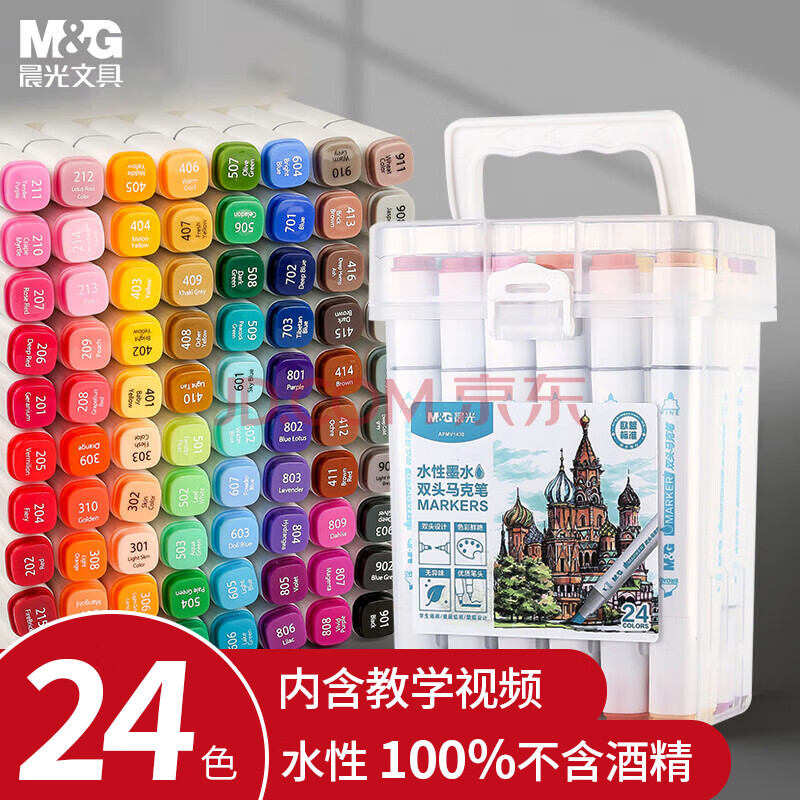 商品相册:晨光(M&G)文具24色水性马克笔安全双头无异味方杆水彩笔记号荧光笔美术儿童绘画生日开学女孩生日礼物第