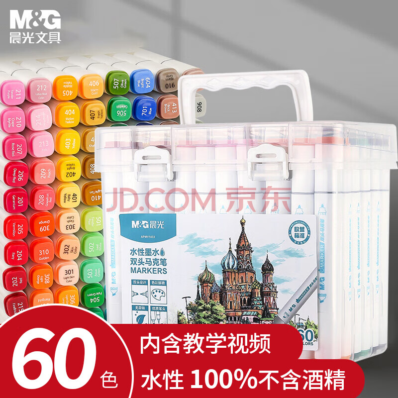 商品相册:晨光(M&G)文具60色水性马克笔安全双头方杆水彩笔记号荧光笔美术儿童画笔女孩手工diy生日开学礼物第