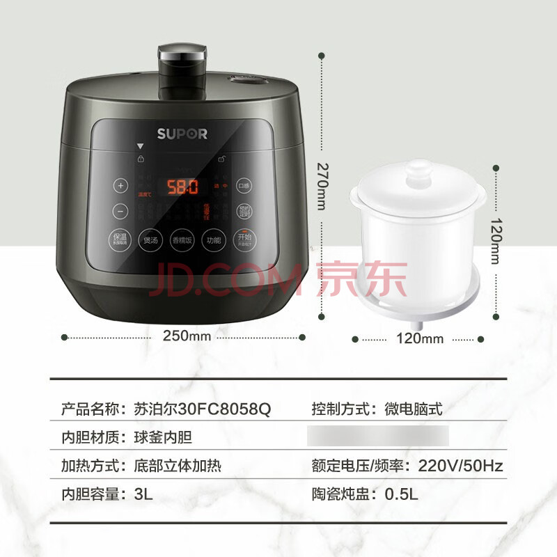 商品相册:苏泊尔 3L迷你球釜电压力锅 轻养一人食 一次一餐 低温烹饪功能 SY-30FC8058QS 高压锅第
