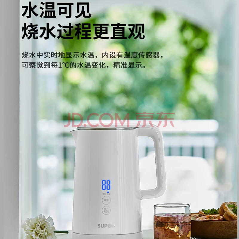 商品相册:苏泊尔 SUPOR C 电水壶1.5L五段温控 实时温显 便携式触控温度 一键开盖 双层保温防烫SW-15J68A第