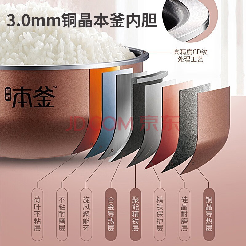 商品相册:苏泊尔(SUPOR)电饭煲 SF40HC43 本釜电饭锅IH电磁加热智能预约4L家用多功能4-5人 玫瑰金第