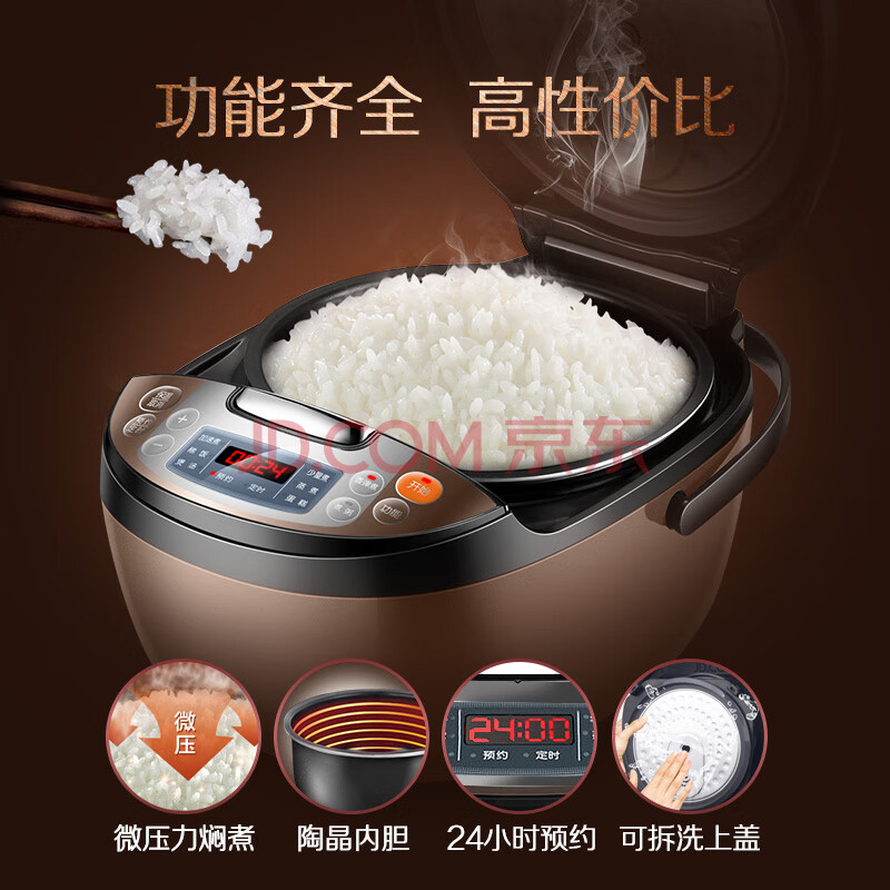 商品相册:苏泊尔(SUPOR)电饭煲电饭锅4L陶晶不粘内胆2-6人微压焖香蛋糕功能家用智能电饭煲巧克力色40FC829D第