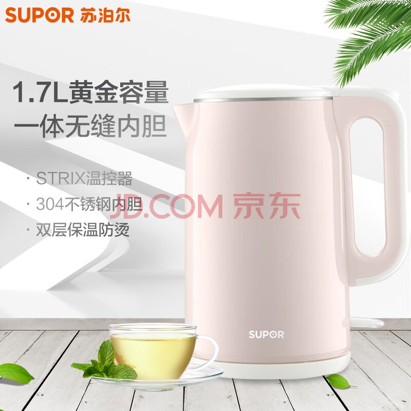 商品相册:苏泊尔(SUPOR)电水壶双层防烫304不锈钢大容量家用保温电热水壶烧水壶1.7L STRIX温控器SW-17T58A第