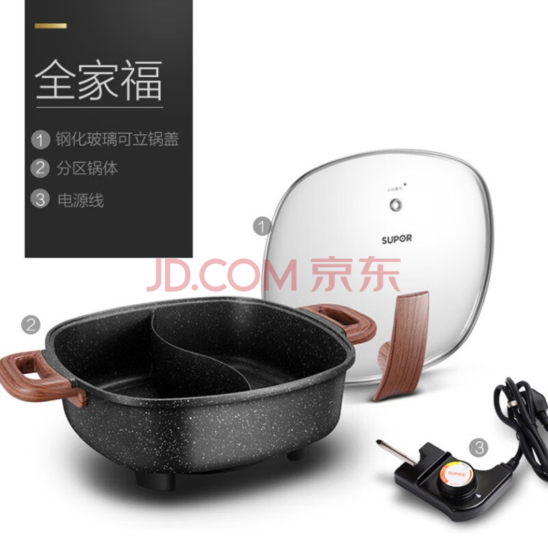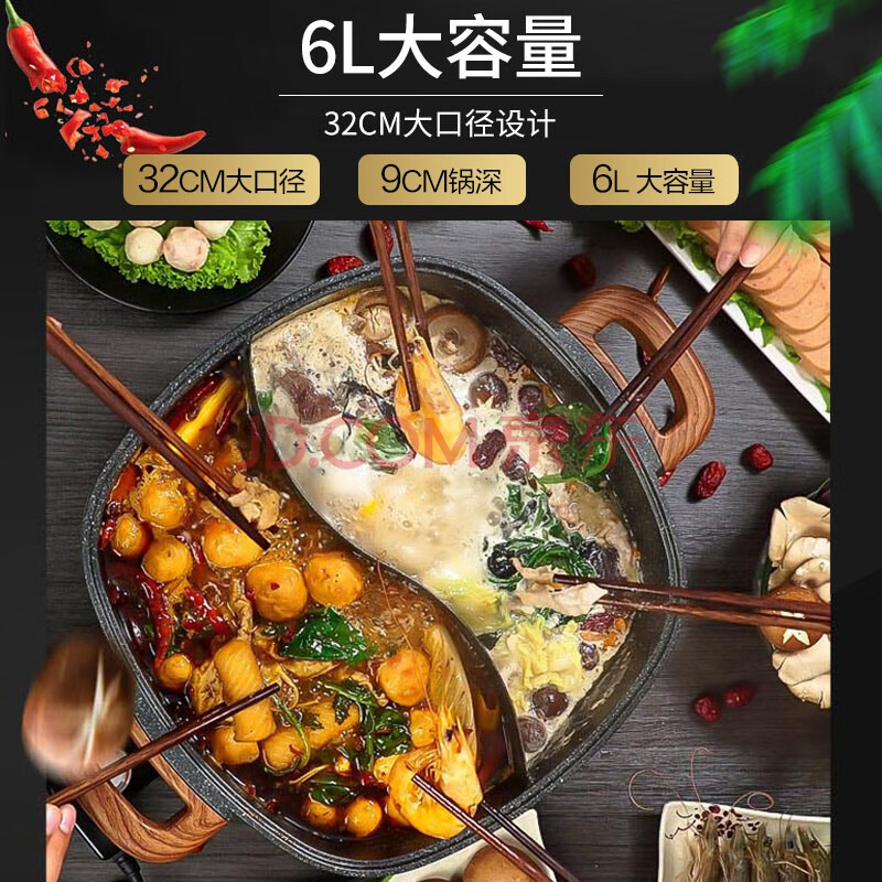 商品相册:苏泊尔 SUPOR C 多用途锅电火锅家用 多功能电热锅电煮锅6L大容量麦饭石色不粘锅鸳鸯火锅锅H3232FK609Y第