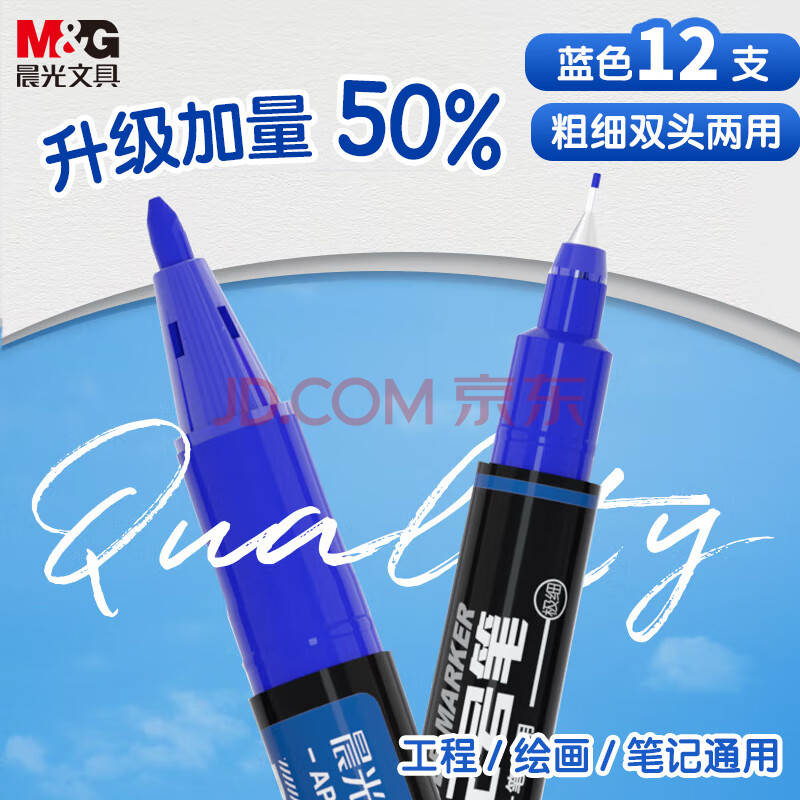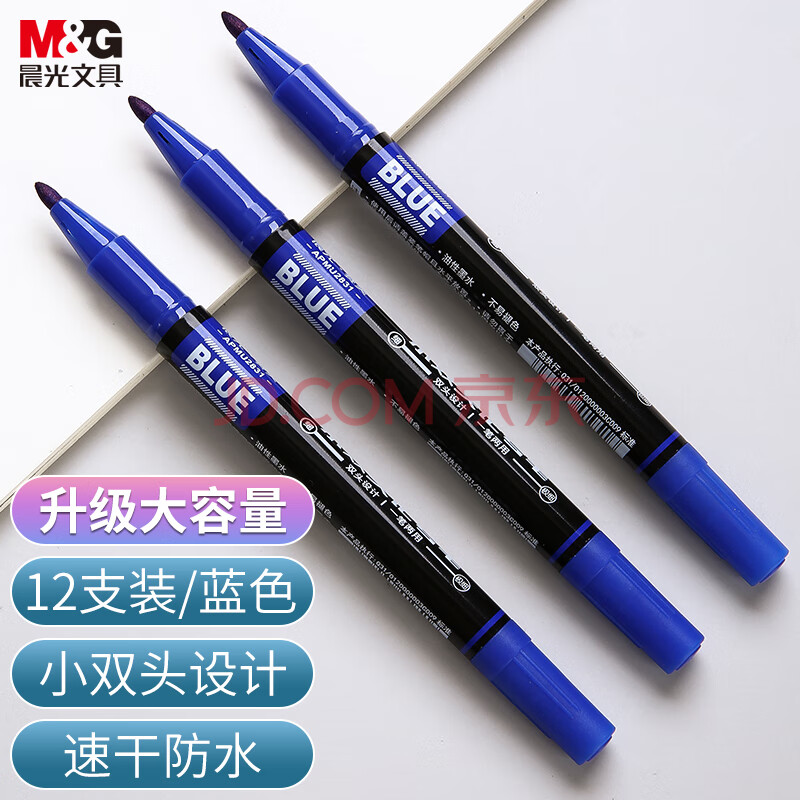 商品相册:晨光蓝色粗细双头物流笔记号笔 防水马克笔油性笔 儿童学生勾线笔升级加量 办公用品12支APMU2831B第