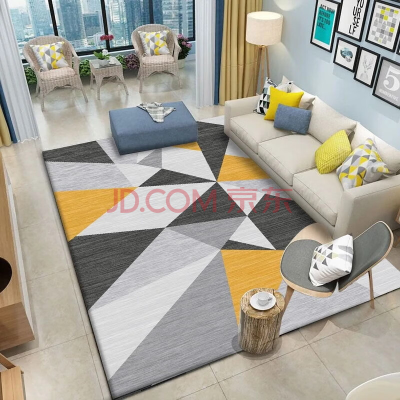 商品相册:梦蜓水晶绒客厅地毯 亲肤舒适耐脏防滑 几何黄 现代简约 200*300cm第
