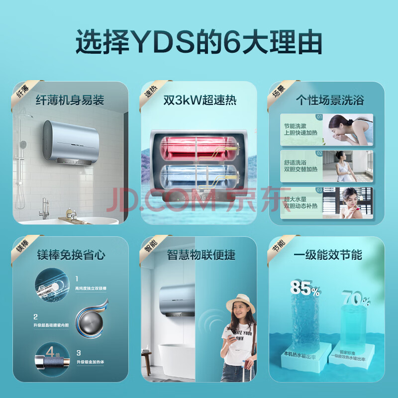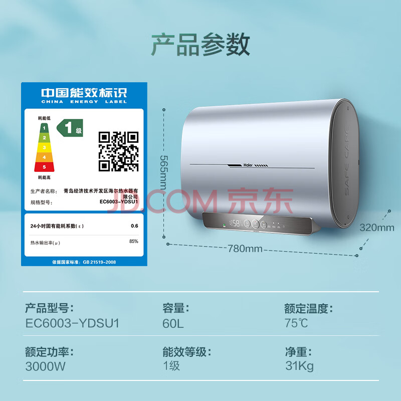 商品相册:海尔(Haier)【YDS】60升电热水器 3KW速热 新一级能效 一键增容 纤薄机身 EC6003-YDSU1 *第
